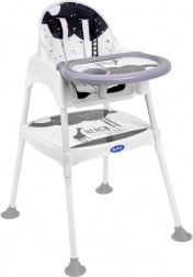 Židlička má až tři různé funkce! Lze ji použít jako židličku na krmení pro děti od 6 do 36 měsíců, a když batole příliš povyroste, můžete výrobek přeměnit nažidličku a stolek. Tato kombinace vám umožní nejen pohodlně jíst jídlo, ale je také skvělá na kreslení a hraní! V této podobě bude bez problémů sloužit až do šesti let!