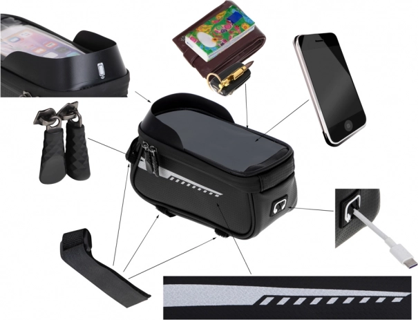 Tato vodotěsná cyklistická taška je dokonalým doplňkem pro každého cyklistu, který hledá funkční a odolné řešení pro dlouhé jízdy. Je vybavena speciálním místem pro telefon, takže ho můžete snadno používat jako navigaci nebo hudební přehrávač během jízdy. Držák je navržen tak, aby telefon zůstal viditelný a přístupný přes průhledné a vodotěsné okénko.