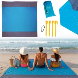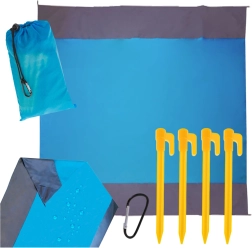 Nikdo nemá rád, když se zvedne vítr a ovívá rohy deky a roznáší písek na vše, co na ní leží. Neustálé opravování deky také není příliš pohodlné. U této plážové deky bylo vše pečlivě promyšleno - sada obsahuje 4 jednoduché kolíky, díky kterým můžete deku připevnit k zemi!