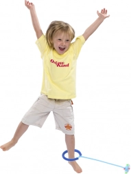 Hra je intuitivní: kroužek nasaďte na nohu, roztočte a druhou nohou přeskakujte šňůru s míčkem. Skvělá výzva pro děti i dospělé – kdo udělá více otoček nebo to roztočí nejrychleji?
