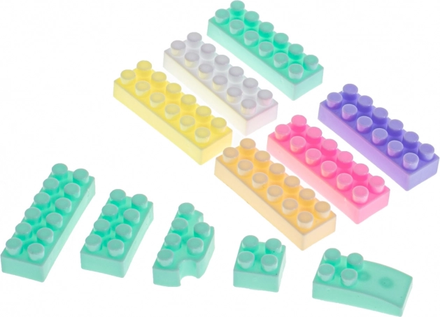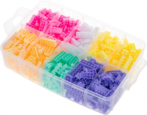 Krásné pastelové barvy lákají děti ke hře a jsou ideálním dárkem. Bloky jsou zabaleny v praktickém plastovém boxu s přihrádkami pro snadné ukládání a třídění podle barev.
