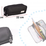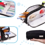Univerzální pouzdro do školy, na univerzitu i do kanceláře. Tři samostatné komory na zip usnadňují organizaci a rychlý přístup k dřívkům, fixům, pravítku i dalším doplňkům. V bočních oddílech najdete malé kapsičky a pružné pásky, které pomáhají pevně uchytit příslušenství.