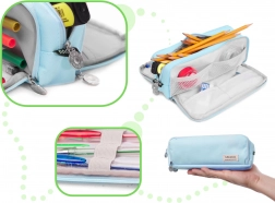 Toto univerzální pouzdro je ideální do školy, na univerzitu i do kanceláře. Nabízí 3 oddělené komory na zip, v bočních částech navíc naleznete malé kapsičky a pružné gumičky pro uchycení drobných potřeb. Moderní vzhled potěší děti i dospělé.