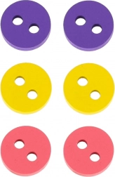 Sada barevných knoflíků a dlouhá šňůrka vybízejí k tvoření různých vzorů, počítání i učení barev.