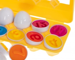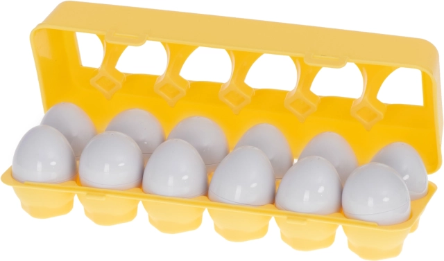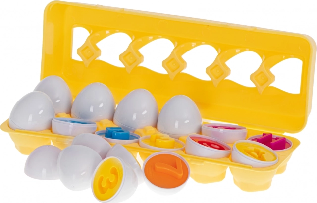 Edukativní hračka ve tvaru vajíček nabízí hodiny zábavy pro děti, které učí rozpoznávání tvarů a barev. Sada obsahuje 12 vajíček, které se musí spojit do správné poloviny pomocí tvaru a barvy. Tato skládačka nejen podporuje logické myšlení a kreativitu, ale také pomáhá rozvíjet manuální dovednosti u nejmenších.