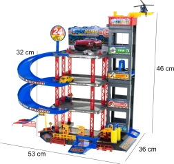 Patrový parkovací garáž je vybavena mnoha úrovněmi pro parkování a hru, což umožňuje umístit a uskladnit nejen autíčka obsažená v setu, ale i jiná vozidla vašeho dítěte. Manuálně ovládaný výtah poskytuje realistický zážitek, zatímco benzínová stanice a myčka přidávají na interaktivních možnostech.