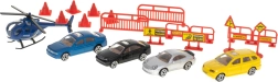 Značky, bariéry, rampy a nálepky dodávají realismus, zatímco různé auta a helikoptéra oživí každou hru. Set pomáhá rozvíjet jemnou motoriku a koordinaci ruky a oka.