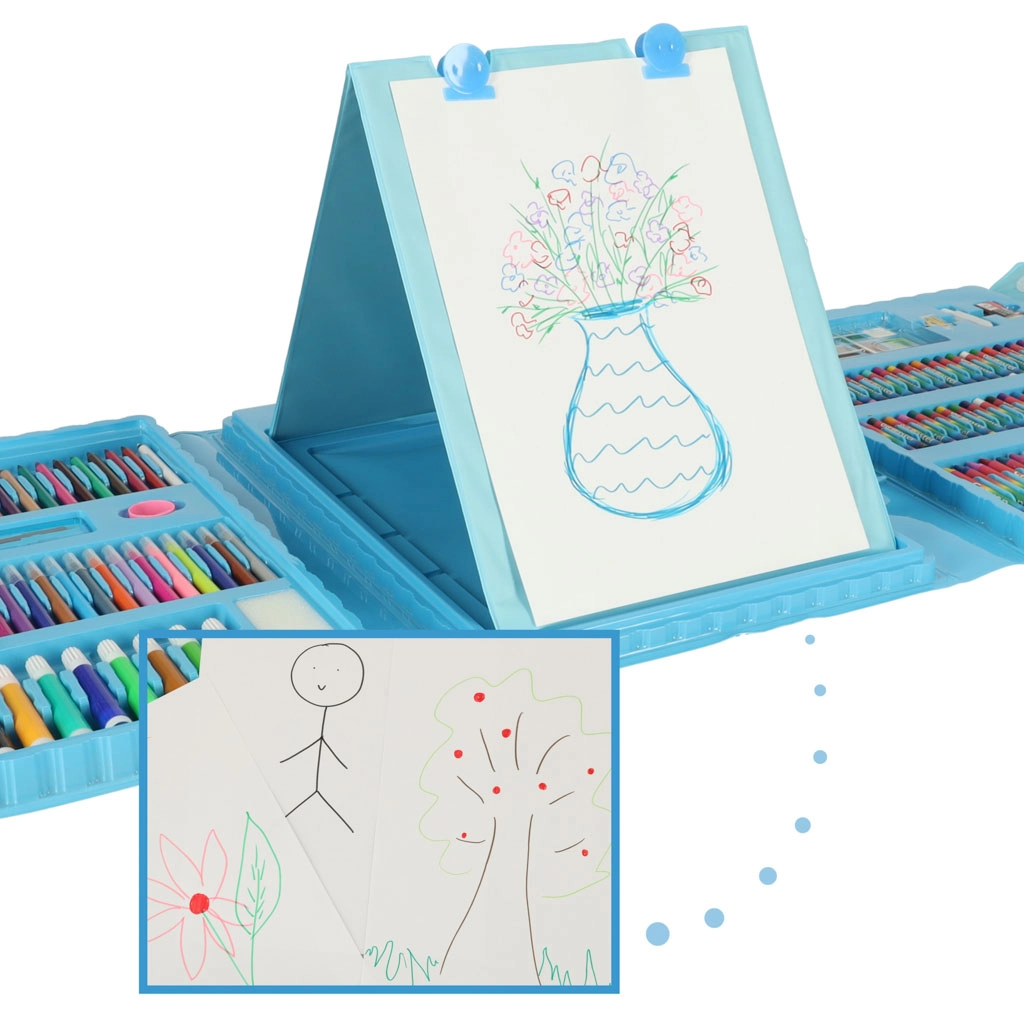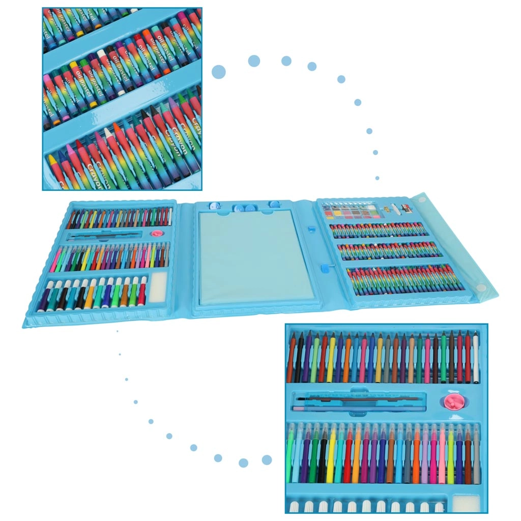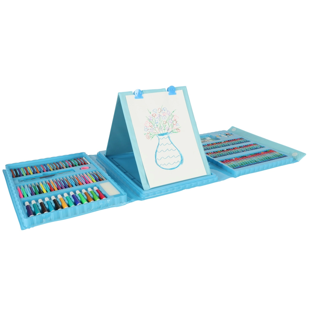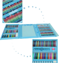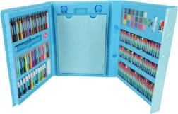 Objevte kompletní výtvarnou sadu v praktickém modrém kufříku s vestavěným stojánkem – ideální pro děti i začínající umělce. Obsahuje širokou škálu pomůcek: fixy, pastelky, voskovky, olejové pastely, akvarelové barvy a příslušenství. Vše je přehledně uspořádané v přihrádkách, snadno přenosné a připravené k tvorbě doma, ve škole i na cestách.