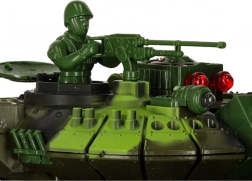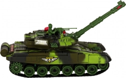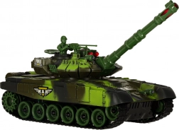 RC tank v kamufláži přináší napínavou akční hru doma i na zahradě. Věž se plynule otáčí, kanón simuluje zpětný ráz a při přesném zásahu zhasínají kontrolky protivníka. Po třech zásazích je soupeřův tank na krátkou dobu vyřazen – bitva se pak může začít odznova. Ovládání 2.4 GHz zaručuje stabilní dosah a možnost soubojů více hráčů bez rušení.