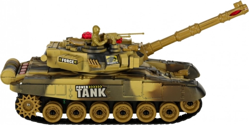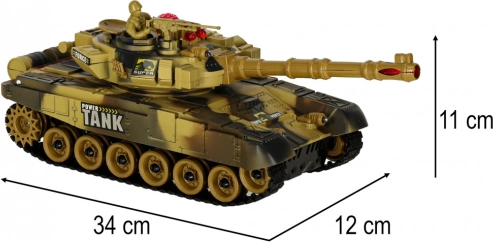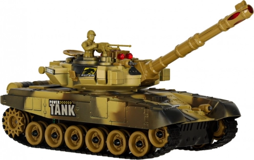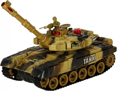 RC tank v pouštním provedení nabízí plynulou jízdu vpřed/vzad, otáčení na místě a otočnou věž o 180° na obě strany (celkem 360° palebný sektor). Měkké gumové pásy zajišťují dobrou přilnavost na různých površích. Při výstřelu tank simuluje realistický zpětný ráz a doprovodné zvuky motoru či palby.