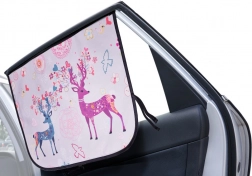 Tato dvouvrstvá magnetická záclonka na boční okno automobilu přináší okamžitou úlevu od ostrého slunce a tepla. Z jedné strany je barevný motiv se soby, z druhé strany kontrastní nápis „Go out and enjoy the sunshine“ na černém podkladu. Díky kvalitnímu polyesteru je clona odolná, snadno omyvatelná a zajišťuje kompletní zatemnění.