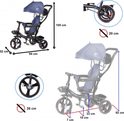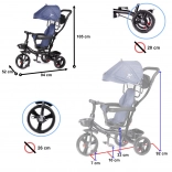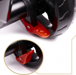 - Bezpečí a kontrola: 5bodový pás (popruh), odnímatelné madlo, zadní brzda, gumové rukojeti.