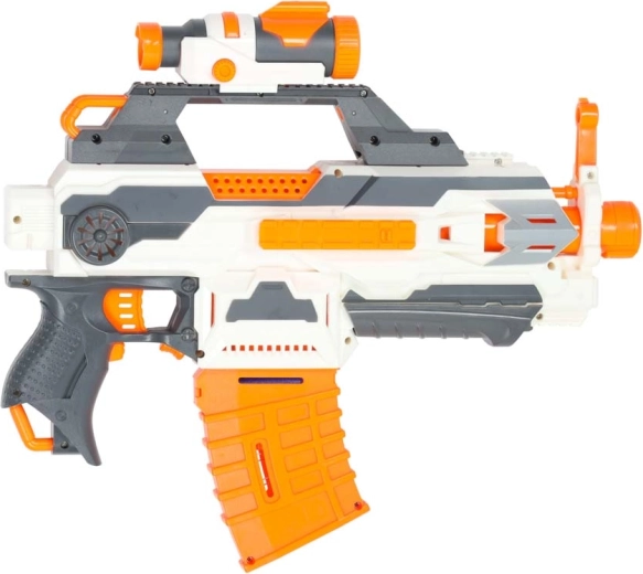 Užij si maximální variabilitu díky modulární konstrukci. Taktické lišty nahoře i po stranách umožňují snadné připojení doplňků, takže si blaster přizpůsobíš přesně své taktice. Posuvné okénko výhozu nábojnic usnadní údržbu při intenzivní přestřelce a sklopný vizír zlepší míření. Dva zásobníky (na 6 a 10 šipek) zaručí, že ti nedojde munice v rozhodující chvíli.