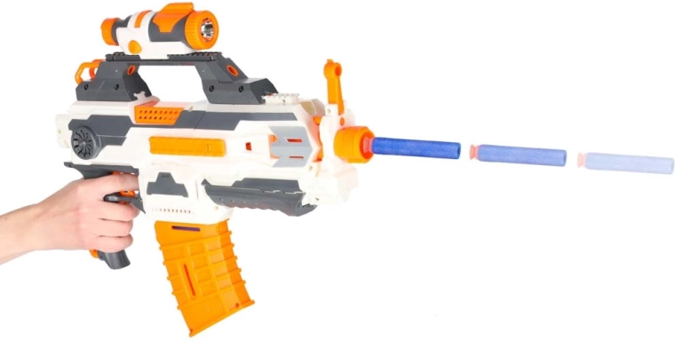 - Blaster s taktickými lištami, svítilna, odnímatelný tlumič hlavně, 2 zásobníky (6 a 10 šipek), 30 pěnových šipek, pažba s úchytem na zásobník, návod s obrázky