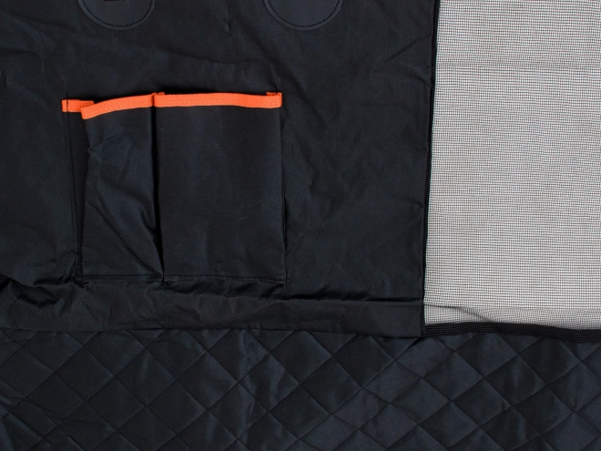V přední části je síťová vložka, která zlepšuje proudění vzduchu a umožní psovi vidět na vás i na cestu, aniž by se pokoušel přejít na přední sedadla. Spodní strana je z protiskluzového materiálu pro stabilitu, nechybí otvory pro bezpečnostní pásy a dvě praktické kapsy na vodítko či pamlsky. Díky odolným materiálům a kovovým kroužkům lze potah dodatečně přichytit k madlům nad dveřmi pro extra jistotu.