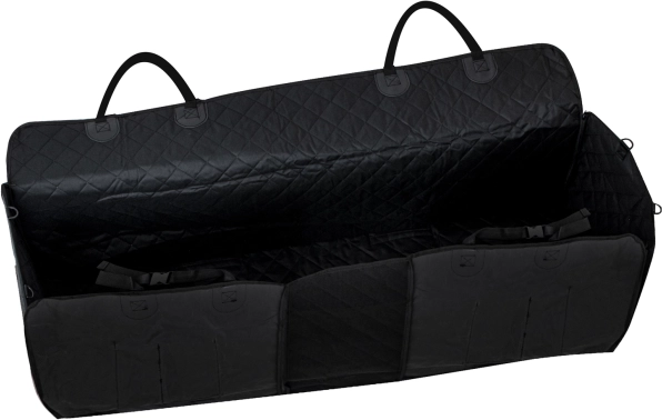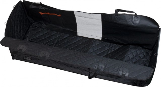 Velká univerzální deka do auta ve tvaru ochranného boxu se rychle upevní na opěrky hlavy pomocí nastavitelných popruhů a spolehlivě zakryje celý prostor zadních sedadel. Zipy na bocích umožní zvednout bočnice a vytvořit uzavřený prostor, takže pes nevyskočí při otevření dveří. Voděodolná a snadno omyvatelná vrstva udrží interiér v čistotě i po výletech v dešti či po lese.