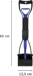 Praktická lopatka na psí exkrementy pro rychlé, čisté a hygienické úklidy během procházek. Skládací rukojeť šetří záda, lehká konstrukce se pohodlně ovládá a opakované použití šetří peníze i přírodu. Vyrobena z odolného plastu, snadno se omývá. Dostupná v barevné kombinaci černo‑modrá.