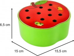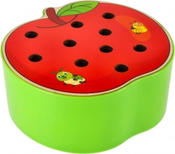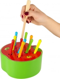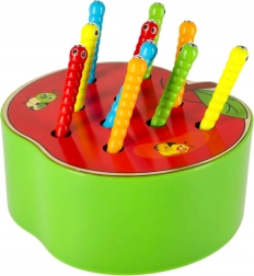 Zábavná dřevěná hra pro děti, ve které pomocí magnetické hůlky chytají barevné housenky schované v jablíčku. Podporuje jemnou motoriku, koordinaci ruka–oko, soustoředění a trpělivost. Kvalitní dřevěné provedení s magnetickou hůlkou a 10 barevnými housenkami je ideální pro smysluplnou hru inspirovanou principy Montessori.