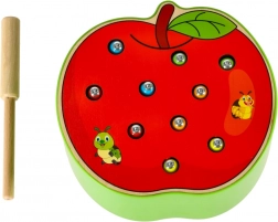 Magnetická hůlka a otvory v jablíčku motivují děti k přesným pohybům, čímž přirozeně posilují koordinaci ruka–oko a trpělivost.