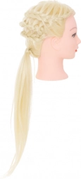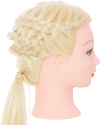 Profesionální tréninková hlava pro kadeřníky s dlouhými blond vlasy je ideální pro začátečníky i pokročilé. Umožňuje česání, stříhání, zaplétání copů, tupírování, vytváření drdolů a práci s teplem jako kulmování, fénování a žehlení. Vlasy jsou usazeny ve směru růstu, takže se snadno rozčesávají a nepůsobí zacuchání.