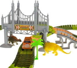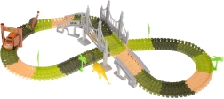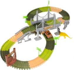 Sada obsahuje: 160 dílů dráhy, autíčko, 2 dinosaury, 4 palmy, most a bránu. Autíčko je poháněno 1 baterií AA 1,5V, která není součástí balení. Všechny díly dráhy se snadno skládají a jsou velmi flexibilní pro různé tvary a varianty.