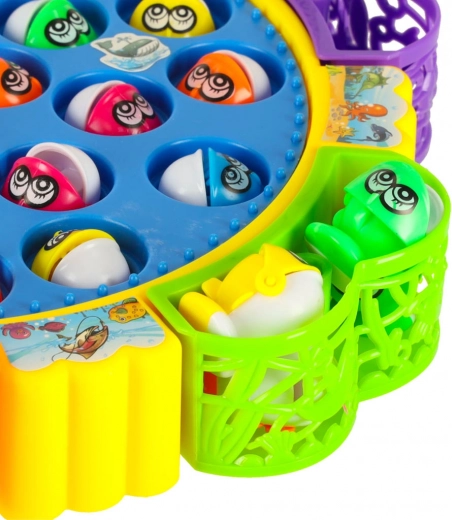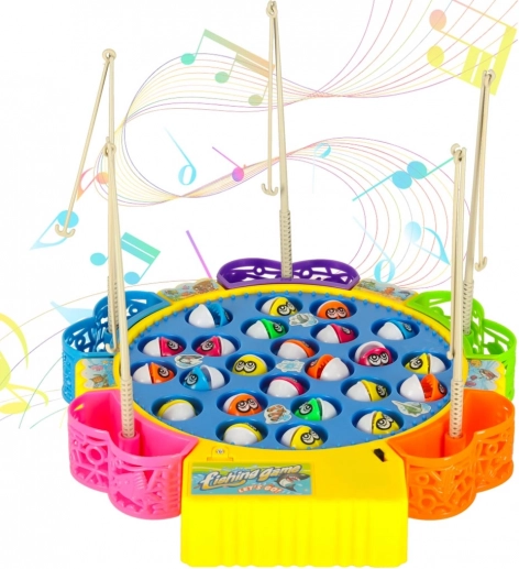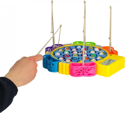 Zábavná rodinná hra pro 1–5 hráčů, ve které chytáte rybičky na otáčejícím se rybníčku. Motor pohání rotující plošinu, rybky otevírají a zavírají pusinky a hra hraje melodii. Součástí je 24 rybek, 5 prutů a barevná základna s košíčky. Skvěle rozvíjí reflexy, koordinaci oko–ruka a sou koncentraci.