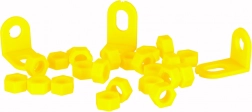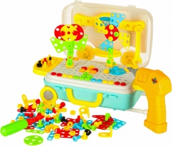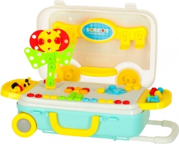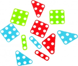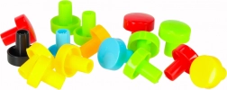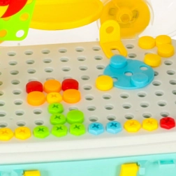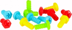 Sada barevných šroubků, knoflíků a tvarů umožní skládat květiny, zvířátka i geometrické obrazce a učí rozpoznávat barvy a tvary.