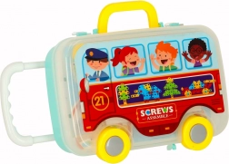 Tato edukační sada je ideální pro malé kutily. Barevné šroubky, destičky a tvary se šroubují do pevné perforované desky – ať už ručně, nebo pomocí dětské vrtačky na baterie, která se točí jako opravdová. Děti si procvičí koordinaci oko–ruka, poznávání barev a tvarů i technické myšlení.
