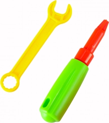 Dětská vrtačka na 2× AA se po zapnutí otáčí a usnadní šroubování i vyndávání barevných šroubků. Skvělá pro realistickou hru na dílnu.