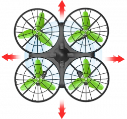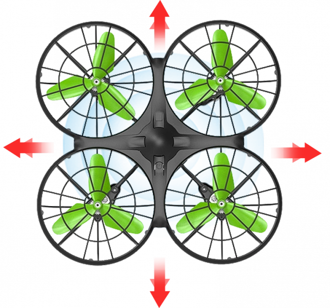 Ochranné kryty rotoru zajišťují bezpečnost při letu a chrání vrtule před poškozením.
