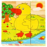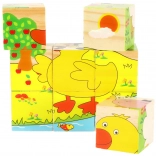 Přineste kouzlo farmy do dětského pokoje s tímto dřevěným puzzle setem. Sada obsahuje 9 barevných kostek, které lze použít k poskládání 6 různých farmářských motivů včetně pejsků, kačenek, kraviček, kohoutů, králíčků a jehňátek. Bezpečné a odolné—kostky jsou vyrobeny z přirozeně dobroušeného dřeva bez ostrých hran, což zajišťuje bezpečnost během hry.