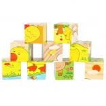 Každá kostka je zdobena barevnými ilustracemi z farmy, které stimulují dětskou představivost a zrakové vnímání.