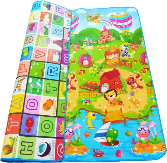 - Oboustranný design: abeceda a pohádkový svět se zvířaty