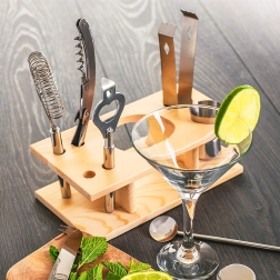 Vhodné pro profesionály i amatéry barmanského umění. Díky nástrojům obsaženým v sadě můžete každou lahev snadno otevřít, namíchat správné poměry tekutin a oddělit led nebo větší kousky ovoce.