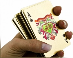 Zvýrazněte svůj karetní večer exkluzivním balíčkem, který zaujme na první pohled. Zlatá, metalická povrchová úprava s motivem dolarů působí luxusně a zároveň je praktická – plastové karty jsou trvanlivé, nelámou se a nenasáknou vlhkostí. Standardní sada je vhodná pro většinu oblíbených her, od pokeru přes kanastu až po prší.