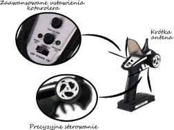 Moderní vysílač 2,4 GHz poskytuje spolehlivý dosah až 150 m a čisté řízení bez rušení. Vodotěsné šasi chrání elektroniku, vyvážený trup pomáhá při automatickém narovnání po převrácení. V balení najdete vše k okamžité jízdě – baterii, nabíječku i stojánek.