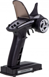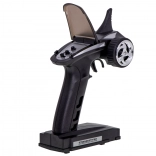 Pistolový ovladač na frekvenci 2.4 GHz nabízí stabilní signál a dosah až kolem 150 m. Užijte si plynulé přidávání plynu, reverz a citlivé řízení bez rušení.