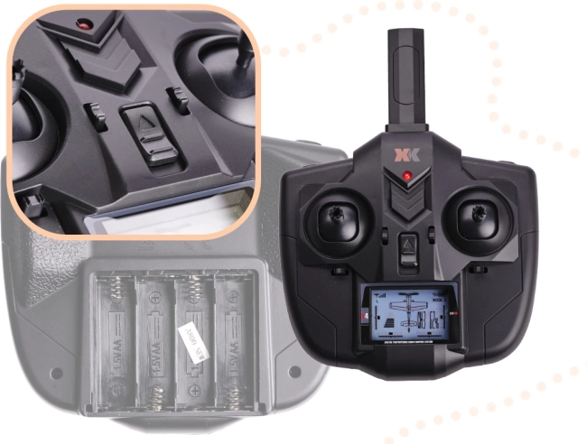 Součástí balení je vysílač 2,4 GHz s jednoduchým ovládáním a stabilizační gyroskop, který pomáhá držet model ve správném směru. Model složíte během několika minut a po rozložení nezabírá mnoho místa – ideální na výlety i rychlé polétání na louce.