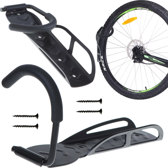 Držák je vhodný pro všechny typy kol bez ohledu na velikost kol. Montáž je snadná a rychlá, stačí jej připevnit na zeď šrouby a rozpěrnými kolíky, které jsou součástí balení. Robustní konstrukce a odolné materiály zaručují, že kolo bezpečně udrží na svém místě.