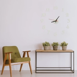 Tento hodinový set určený pro samostatnou montáž nabízí flexibilitu rozměrů od 70 cm až po 130 cm. Hodiny jsou určeny pouze pro montáž na hladké povrchy a jsou napájeny AA bateriemi, které nejsou součástí balení. Plynulý chod hodinových ručiček zajišťuje přesné měření času.