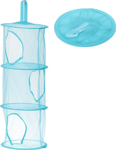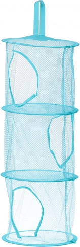 Praktický závěsný organizér se třemi prostornými segmenty ušetří místo na podlaze a udrží dětský pokoj v pořádku. Průhledná síťovina usnadní přehled o obsahu, lehká konstrukce z polyesteru s kovovým rámem zajistí snadnou manipulaci a odolnost. Jednoduché zavěšení na háček či tyč a svěží bleděmodrá barva dodají pokoji hravý vzhled.