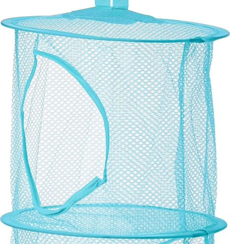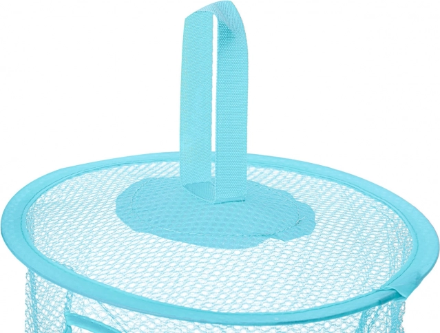 Instalace je otázkou chvilky – organizér stačí zavěsit na háček nebo tyč. Lehký, ale pevný kovový rám drží tvar, zatímco pružná síťovina se přizpůsobí různým typům hraček. Bleděmodré provedení přináší do pokoje svěžest a hravost, kterou ocení děti i rodiče.
