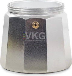 Skládá se ze tří částí: spodní nádržky na vodu s tlakovým bezpečnostním ventilem, nálevky se sítkem na mletou kávu a horní násypky na hotovou kávu. Tento robustní design zajišťuje bezpečnou a jednoduchou přípravu kávy.