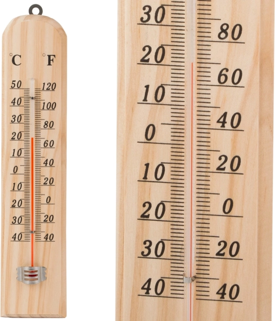 Dřevěný teploměr je elegantní a praktický doplněk pro jakékoli prostředí. Díky jasným stupnicím v Celsiovi a Fahrenheitu snadno přečtete teplotu na první pohled. Je navržen pro montáž na zeď pomocí háčku a nabízí snadné a rychlé upevnění.