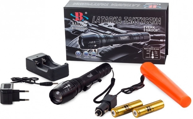 Vojenská svítilna Bailong model 8668 je navržena pro taktické využití. Vyznačuje se odporností proti povětrnostním vlivům a protiskluzovou úpravou, což ji činí ideální pro různé podmínky.