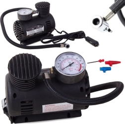 Balíček obsahuje kompresor s hadicí, zástrčku do zapalovače, tlakoměr a sadu koncovek pro různé potřeby.