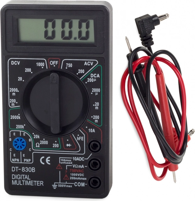 Kompaktní a spolehlivý multimetr vycházející z osvědčené konstrukce DT‑830B vám umožní kontrolovat DC/AC napětí, stejnosměrný proud i odpor. Přehledný LCD displej usnadňuje čtení hodnot a automatické vypnutí šetří baterii, aby byl přístroj vždy připraven k práci.