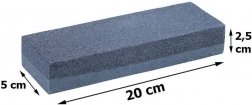 Rozměry 20 × 5 × 2,5 cm se dobře drží v ruce a nabízejí stabilní oporu při broušení. Obdélníkový tvar usnadňuje vedení čepele po celé délce ostří.