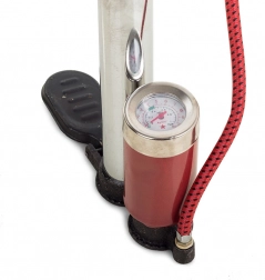 Tato odolná ruční nožní pumpa kombinuje pevnou kovovou konstrukci s integrovaným manometrem pro přesnou kontrolu tlaku. Díky stabilní opěrné ploše a ergonomickému madlu je nafukování rychlé a komfortní, ať už doma, v garáži nebo na cestách.