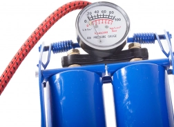 Univerzální nožní pumpa s dvojitým válcem zajistí až dvojnásobně rychlé huštění oproti běžným jednoválcovým modelům. Díky robustní konstrukci, přehlednému manometru a pogumovanému, tvarovanému pedálu je práce pohodlná, stabilní a bezpečná. Maximální tlak 100 PSI / 7 bar pokryje potřeby většiny pneumatik i sportovního příslušenství.